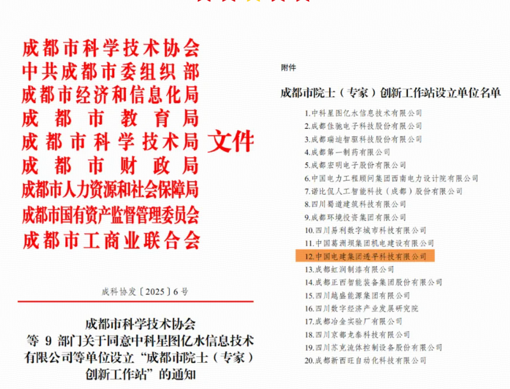 近日,从成都市科学技术协会传来喜讯,中国电建集团透平科技有限公司成功获批设立“成都市院士(专家)创新工作站”。据悉,本批次全市仅20家单位获此殊荣,这一成果不仅是对透平科技创新能力的高度认可,更标志着公司在高端科研平台建设领域实现关键性突破。