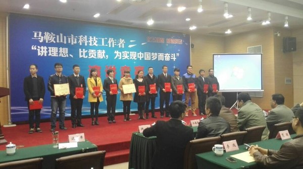 最后市领导为获奖选手们颁发证书,鼓励他们要坚定自己的理想,努力去实现心中的梦,鼓励马鞍山市科技工作者脚踏实地,为自己的梦想而奋斗,为中国梦的早日实现而奋斗!