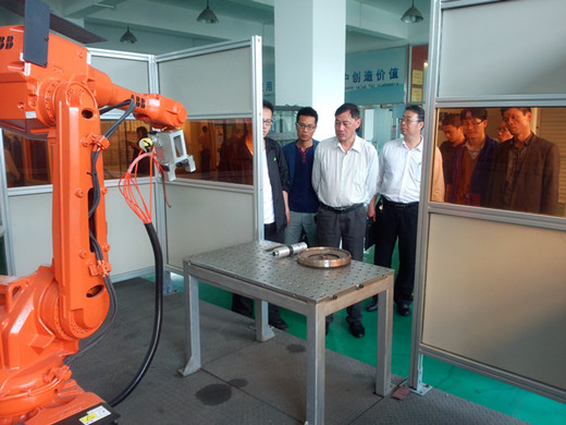 交流活动在温州国际激光与光电科技企业孵化器进行,首先参观了奔腾激光(温州)有限公司,在吴让大总经理的带领下查看了企业的金属切割激光器、激光焊接机器人、激光印花机等。
