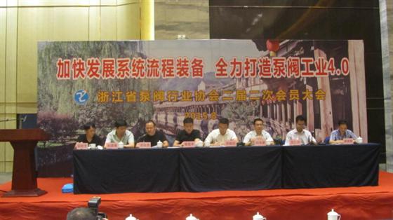 会长黄胜丰作《加快发展系统流程装备 全力打造泵阀工业4.0》的“泵阀产业发展年度总结报告”。黄胜丰表示,自去年以来,泵阀产业进入了低速发展期,生意萧条,订单直线下降,资金运转困难,部分小微企业开始破产倒闭,很多企业家对未来发展失去信心,感到前途一片茫然。全行业转型升级迫在眉睫,可是如何转型?怎样升级?是摆在我们全行业面前的一个重大课题。2013年12月,永嘉县泵阀产业集群被省政府列入省级系统流程装备高新技术产业化基地,为产业的转型发展带来契机。他针对泵阀产业向系统流程装备产业转型发展的“外部环境”、“优势与劣势”、“路径与重点方向”,以及“具体建议”等四大方面作一个系统性的梳理,就“永嘉加快发展系统流程装备,推进产业转型升级”方面的情况做一个简单的通报。首先,发展系统流程装备产业虽然面临着“互联网+”时代来临给泵阀产业转型升级带来契机和政府产业提升战略给系统流程装备产业发展带来信心这双重机遇,但是也面临市场需求低迷,产业发展受阻和产能严重过剩,市场恶性竞争等挑战。其次,发展系统流程装备产业具有以下优势:产业基础扎实,硬件方面具备发展系统流程高新技术产业要求;小系统成套化流程装备发展企业已现雏形,并积累了成功案例;市场网络建设较为完善,为系统流程装备顺利进军市场创造有利条件。但是永嘉泵阀产业也存在着以下劣势:企业自主创新能力薄弱,制约着系统流程装备产业发展;经济形势不景气,影响企业创新投入的信心和决心;土地发展空间小,严重制约了泵阀企业进一步做大做强的可能。