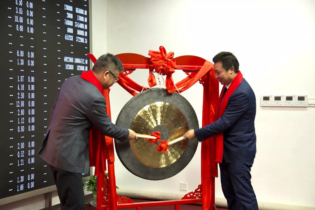 上海市地方金融监督管理局副局长赵万兵与上海国际集团有限公司总裁、上海股权托管交易中心董事长傅帆共同为23家挂牌企业敲响挂牌锣。