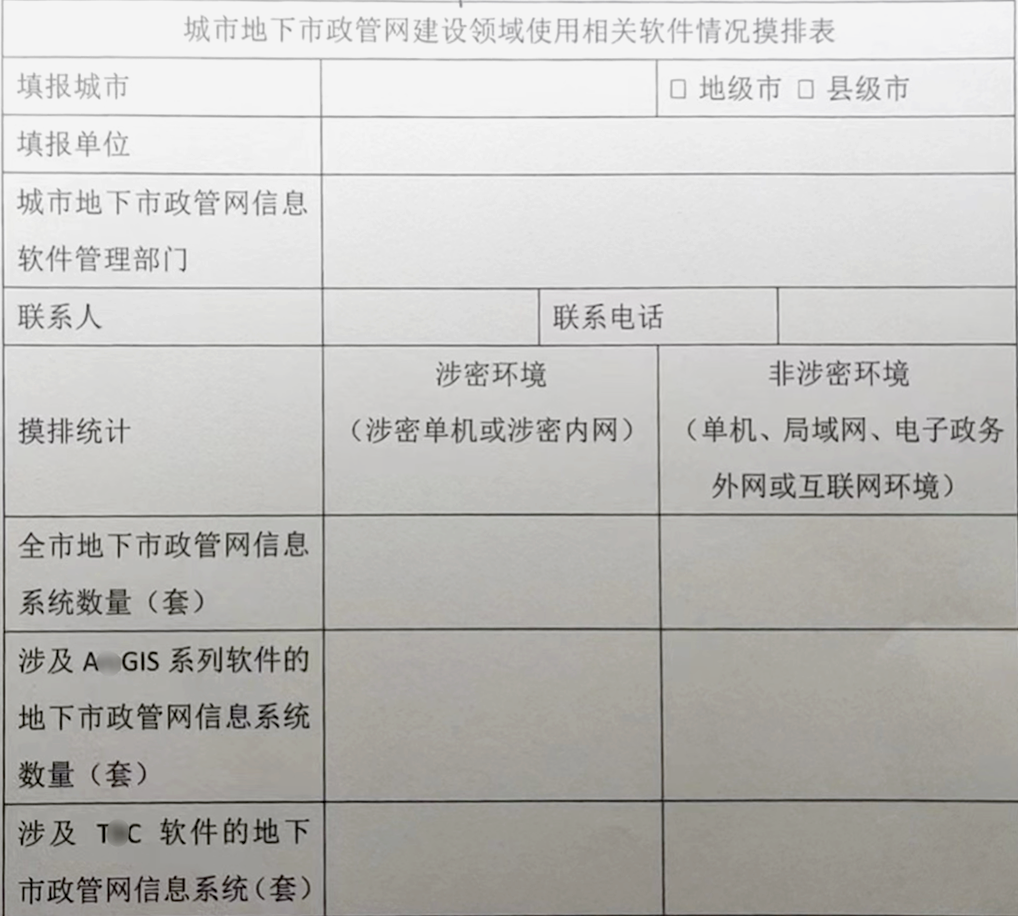 【 相关软件情况摸排表 】