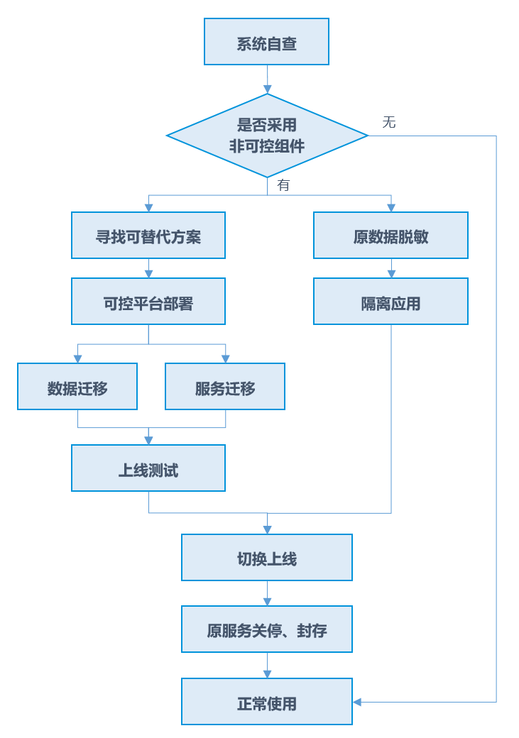 若GIS项目已上线运行,且在开发过程中采用了非可控平台、组件,当前正面临“点名”、“整改”等困局。建议先严格管控原系统的使用范围,对当前可能存在与应用场景不符的涉密敏感数据,及时进行处理,同时积极寻求自主可控GIS平台进行数据及应用的无损迁移;完成后,原GIS系统立即下线隔离封存或销毁。