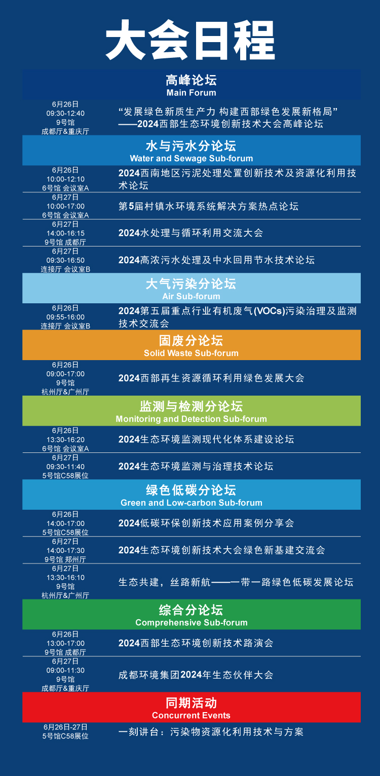 高峰论坛以及各领域分论坛详细议程可点击(6月26-28日,2024生态环境创新技术大会邀您“蓉城”相见 )查看!