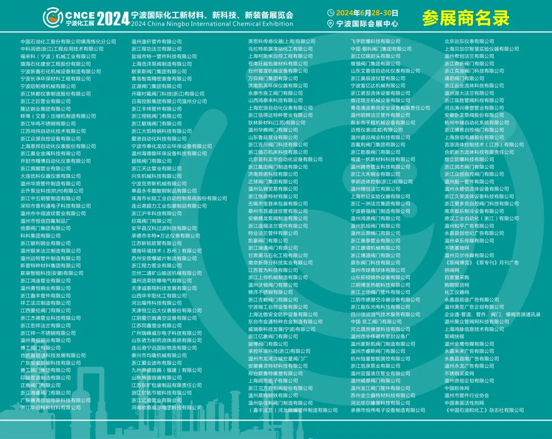 2024宁波国际化工新材料、新科技、新装备展览会,将于2024年6月28-30日在宁波国际会展中心盛大开幕。此次展会将全面展示化工行业全产业链新技术及装备,展示内容涵盖化工新材料、化工装备、化工安全与环保、泵阀管道、仪器仪表等多个领域。为化工行业提供新思路和新动力,为行业优秀产品及科技成果推广提供新渠道。