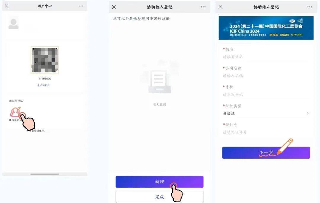 3.点击“新增”,填写好友信息,每增加好友信息完成预登记后即算一位团员。