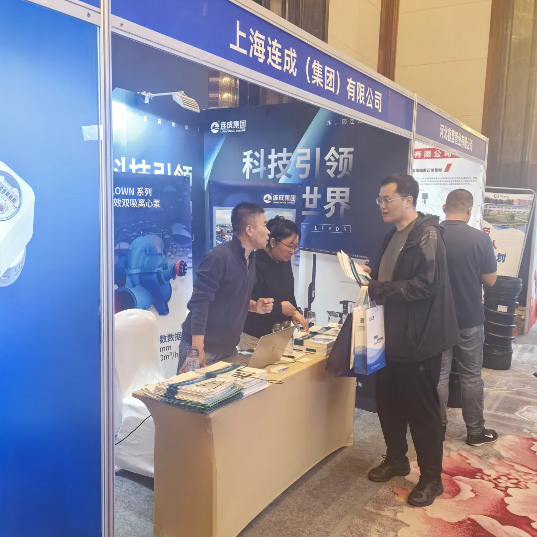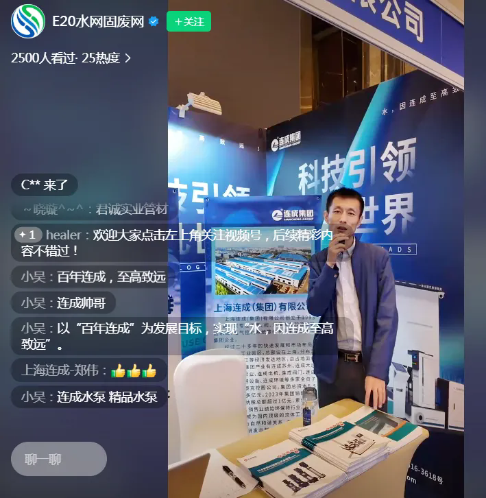 会场外围主办方以直播形式对每个展位分别进行直播采访,在采访中辽宁分公司技术支持侯利辛经理对连成集团概况进行了详细介绍,并对双吸泵及二次供水设备进行了讲解,通过直播介绍让大家更加了解连成产品是以“百年连成”为发展目标,实现 “水,因连成至高致远。”