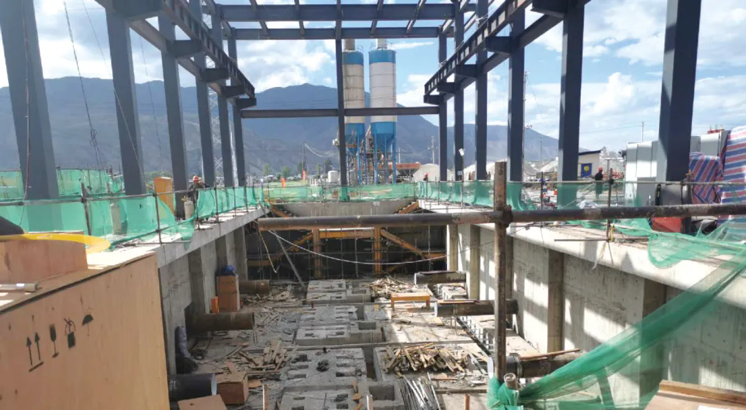 二级泵站位于取水点北侧200m左右的台地上,厂房为地面式厂房,共布置4台套卧式双吸中开离心泵,单泵设计流量0.78m3/s,设计扬程123.0m,泵站厂区地坪高程1300.40m。