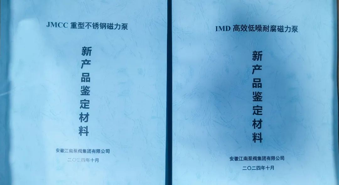 2024年10月26日,安徽江南泵阀集团有限公司组织召开了“JMCC重型不锈钢磁力泵”及“IMD高效低噪耐腐磁力泵”新产品鉴定会,泾县科商工信局领导及专家组参与。