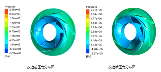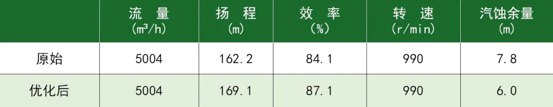 1、水力性能改造,为提高泵抗汽蚀性能和提高泵效率对泵水力进行优化改造。