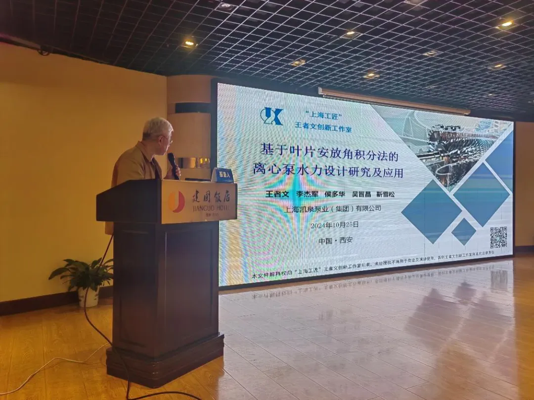 凯泉泵业集团技术中心主任芦洪钟作为特邀嘉宾,发表了题为《叶片泵工程应用的问题与展望》的报告。他向与会的专家和代表展示了凯泉泵业集团在核电、火电、石化、水利等国民经济领域泵的研发及应用成果,并对叶片泵在工程上的大型化、高速化、智能化发展趋势提出了凯泉泵业集团的解决方案。