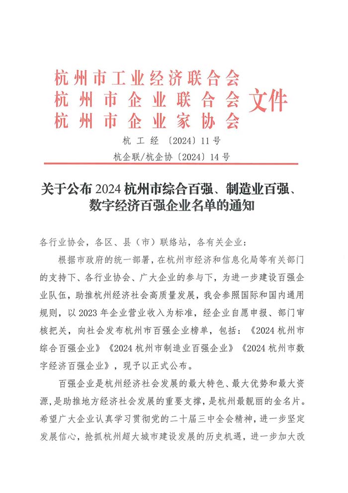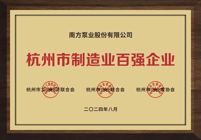 近日,杭州市工业经济联合会、杭州市企业联合会、杭州市企业家协会共同发布了《关于公布2024杭州市综合百强、制造业百强、数字经济百强企业名单的通知》,中金环境旗下南方泵业股份有限公司荣登“2024杭州市制造业百强企业”榜第40位,实现连续3年获评“杭州市制造业百强企业”。