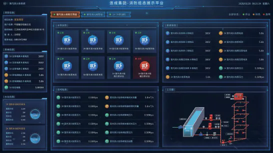2、监控状态包括消防系统电源/消防泵故障、消防泵启停状态、压力开关状态、手/自动转换状态及消防火灾报警状态等;