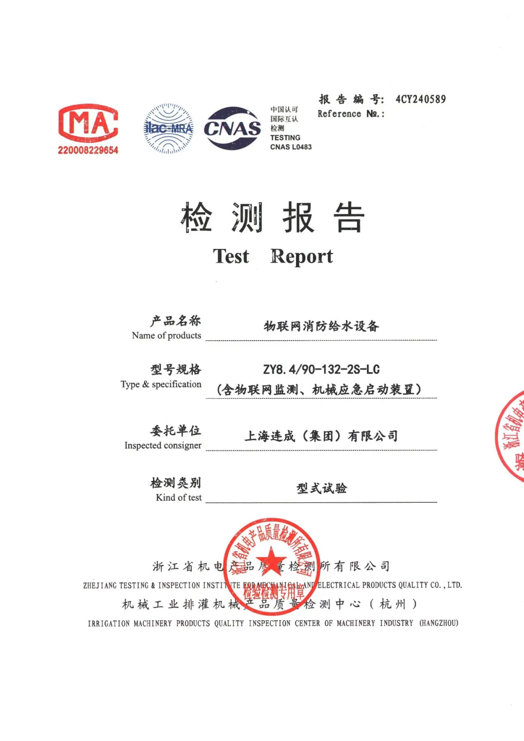 连成消防增压给水成套机组是在消防给水成套机组的功能上增加智能末端试水装置等系统感知元件,通过消防物联网平台、移动终端监控系统等软件组成的智慧消防给水系统。具有自动监测消防水泵的流量、压力、功率、效率等参数功能,保证消防泵水泵不存在过载,过热的风险。消防智慧平台可根据自动记录的系统实时运行数据自动对设备进行安全评估,为系统的维护管理方、使用方提供实时的故障分析和诊断、系统故障率等关键决策依据,旨在全面提高消防给水系统的安全性,可靠性和灭火效能。
