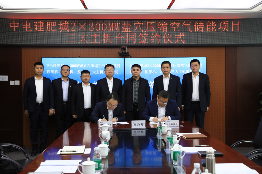 近日,中电建肥城2×300MW盐穴压缩空气储能项目三大主机合同签约仪式在中电建新能源集团股份有限公司山东分公司举行,沈鼓集团与客户签订了中电建肥城2×300MW盐穴压缩空气储能项目空气压缩机组及其附属设备合同。