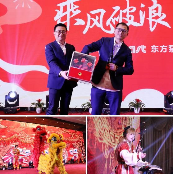 会议的最后是轻松、欢快的晚宴、抽奖环节。集团领导上台祝酒,吴董发表了热情洋溢的祝酒词;现场同仁共同举杯,共祝东方的美好明天!演艺团队带来了精彩的助兴表演,为晚会添彩;特别是为东方泵业特别订制的传统非遗节目口技模仿秀《东方泵业的春天》,博得了现场同仁的热烈掌声。