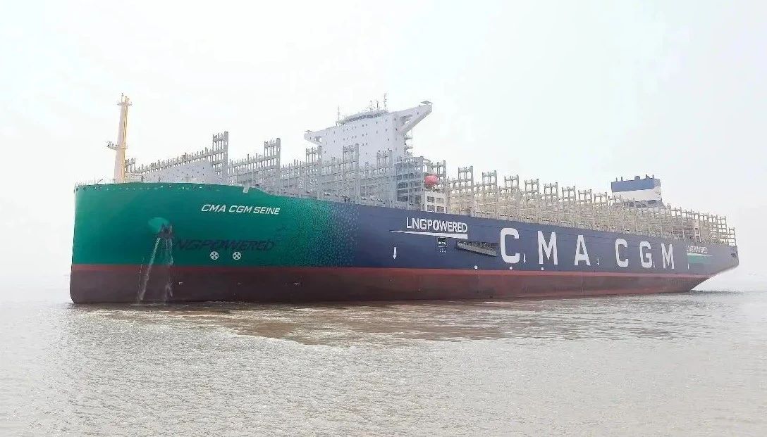 该船是法国达飞集团在沪东中华订造的4艘24000TEU级双燃料动力集装箱船系列的首制船,也是沪东中华继2020年9月完工交付的全球首创23000TEU双燃料动力集装箱船的升级优化型绿色环保超大型集装箱船。该船总长399米,型宽61.3米,型深33.5米,设计吃水14.5米,可承载22万吨货物,可一次装下23872个集装箱,其中包括2200个标准冷藏集装箱,最大堆箱层数达24层,相当于22层楼高度,是新一代海上“绿巨人”和“带货王”。