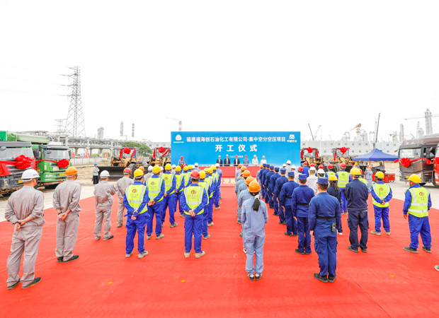 4月18日上午,福建漳州古雷石化基地彩旗招展,中国空分工程有限公司承接的福建福海创7万集中空分空压EPC总承包项目开工仪式盛大举行。作为承载中沙古雷千亿级乙烯项目的"工业之肺",该项目建成后将形成年产7万Nm³/h氧气、9万Nm³/h压缩空气的产能,为全球石化产业高地注入强劲动能。