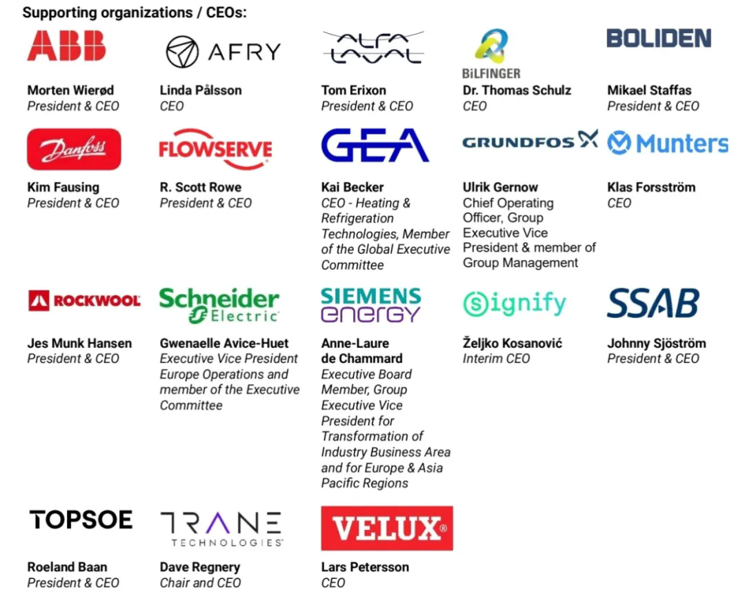 其他签署企业包括丹佛斯、施耐德电气、西门子能源、阿法拉伐等全球友商。