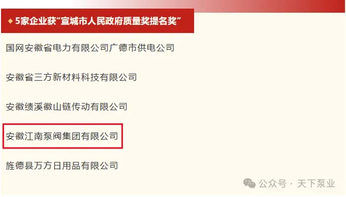 此次荣获“宣城市人民政府质量奖提名奖”,既是对江南泵阀集团核心竞争力的权威认可,更是对公司深耕高质量发展之路的有力鞭策。
