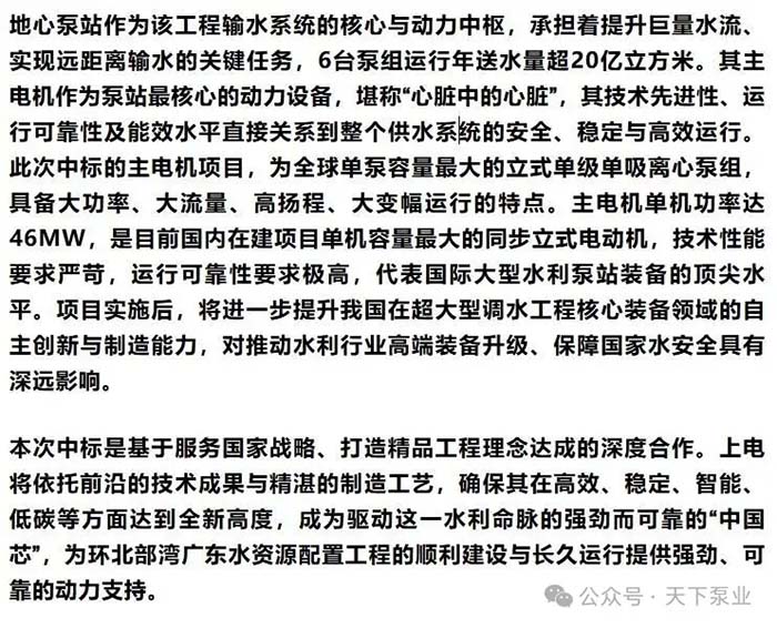 新年伊始,上电公司凭借雄厚的技术实力、卓越的品牌信誉以及丰富的重大工程业绩,成功中标环北部湾广东水资源配置工程地心泵站主电机项目,标志着上电公司在国家战略性水利工程核心装备领域取得重要突破。