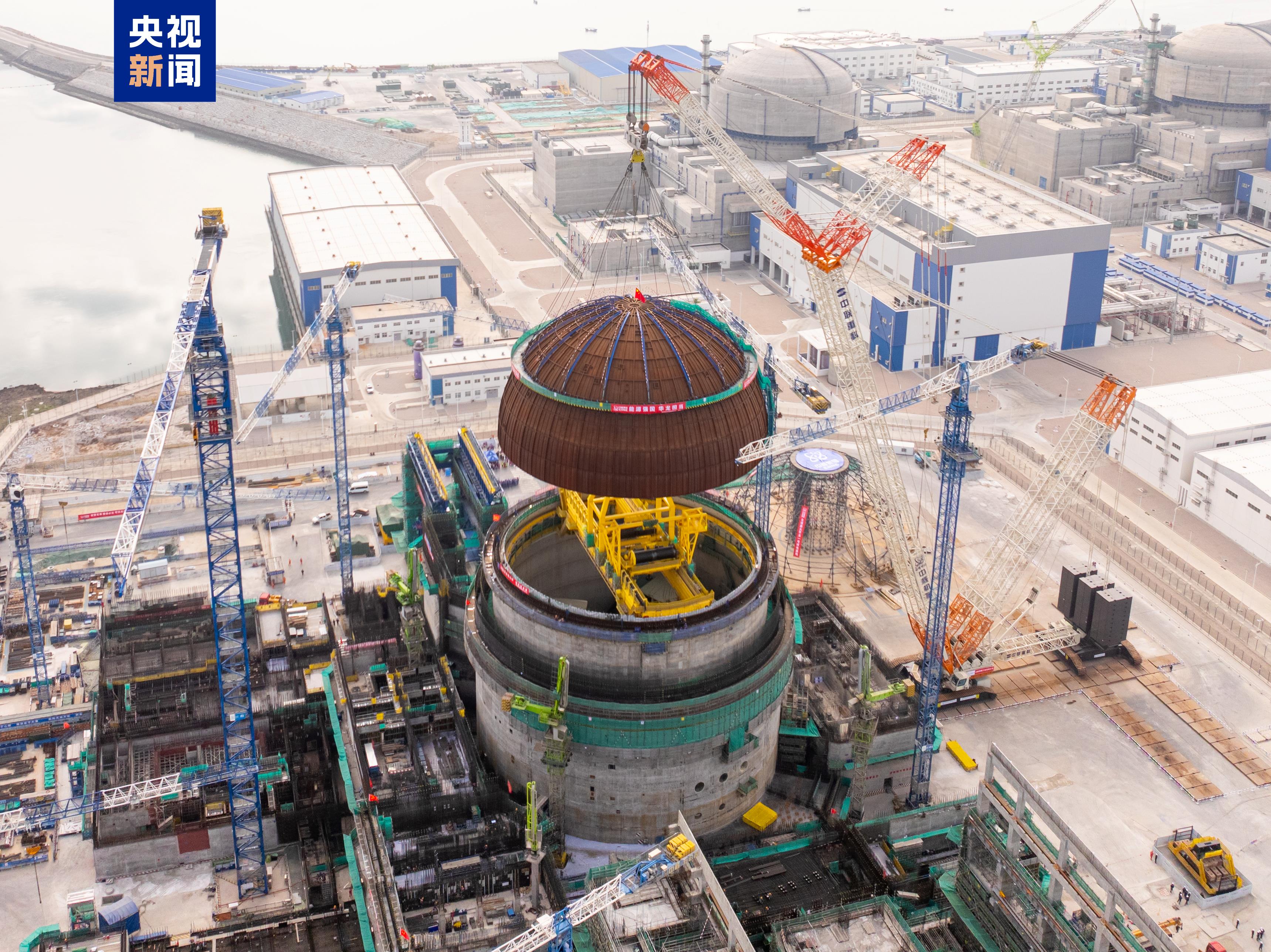 2月4日,采用我国自主三代核电技术“华龙一号”的中核漳州核电3号机组内穹顶吊装成功,标志着该机组从土建施工阶段全面转入设备安装阶段。