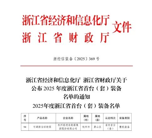 近日,杭齿集团自主研发的“可调距全回转桨”成功入选2025年度浙江省首台(套)装备名单。