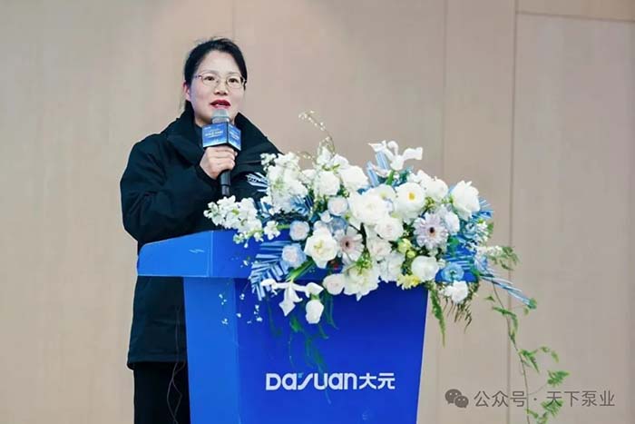 会上,副总经理黄雅芳女士围绕公司整体概况与未来规划作专题介绍。她详细阐述了大元泵业及其旗下成员企业,展示了企业在民用泵、工业泵、液冷泵等领域的全品类覆盖,以及近10000家国内服务网点、产品远销全球近100个国家和地区的渠道网络。她表示,大元正坚持以“市场为中心、以产品为引擎、以品牌为驱动、以文化为灵魂”的经营方针,加速全球化布局,重点深耕东南亚市场。
