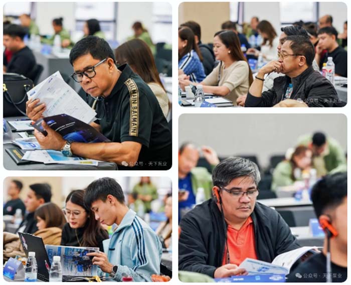 在互动交流环节,外贸部部长吴勇与菲律宾经销商就产品应用、技术支持、市场推广等议题展开深入对话。菲律宾经销商代表分享了当地市场的运营规划,并对大元的品质、技术和服务给予高度评价。随后的订货环节气氛热烈,双方现场达成多项合作意向。