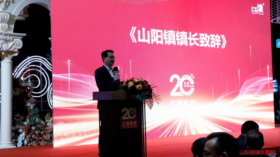 这是新起点,希望江浪科技以20周年新起点,坚守实业初心,深耕技术创新,在高质量发展赛道上行稳致远。山阳将一如既往成为企业最可靠的伙伴。最后,衷心祝愿江浪科技20周年,祝愿嘉宾各位身体健康,工作顺利。