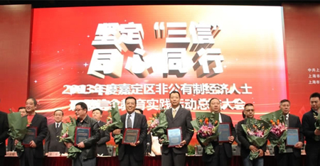 本次会议进行了大会交流与表彰。代表们分别交流了参与理想信念教育实践活动的体会,区委对全区非公经济人士理想信念教育实践活动工作进行了总结。大会表彰一批“优秀建设者”,区领导为上海沪工阀门厂(集团)有限公司董事长杨猛等民营企业家颁发了嘉定区优秀中国特色社会主义事业建设者称号奖牌与荣誉证书。